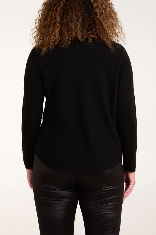 Boat Neck Raw Edge Jumper in Black