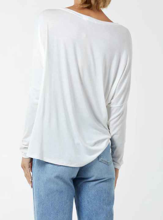 Basic Long Sleeve High Low Top in Cream