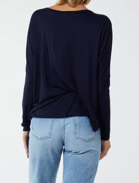 Basic Long Sleeve High Low Top in Navy
